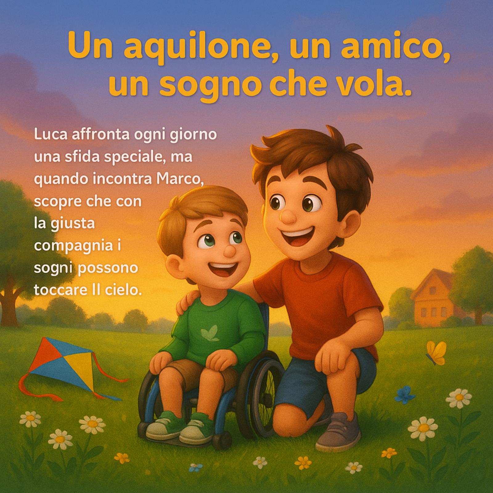 Luca è nuovo a scuola e si muove in carrozzina. Incontra Marco, un compagno curioso e gentile: insieme costruiscono un aquilone, affrontano una gara e scoprono che con collaborazione e sostegno reciproco le sfide possono trasformarsi in opportunità.