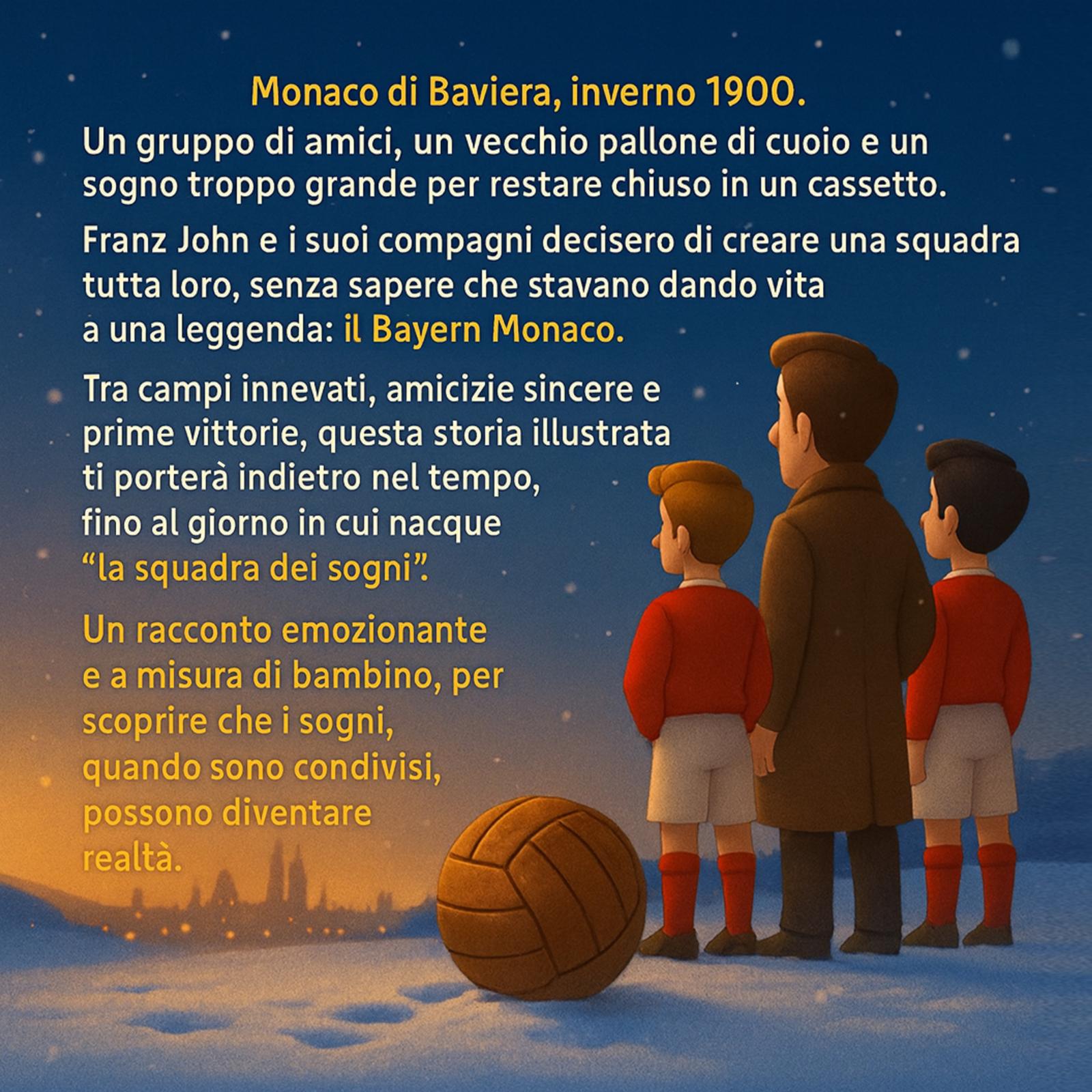 La squadra dei sogni – Le origini del Bayern Monaco è un emozionante libro illustrato per bambini che racconta la nascita e i primi passi di una delle squadre di calcio più famose al mondo. Un’avventura ricca di amicizia, passione e spirito di squadra, perfetta per lettori dai 2 ai 6 anni e per tutti i piccoli appassionati di sport.