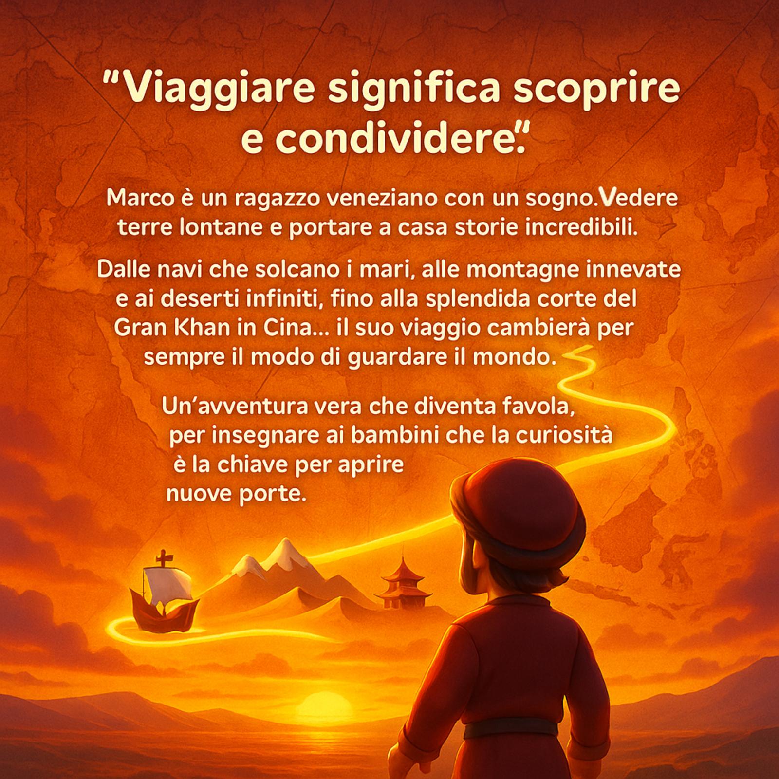 e regala al tuo bambino un viaggio magico con Marco Polo: una favola che accende la fantasia e insegna che viaggiare significa scoprire, imparare e condividere.