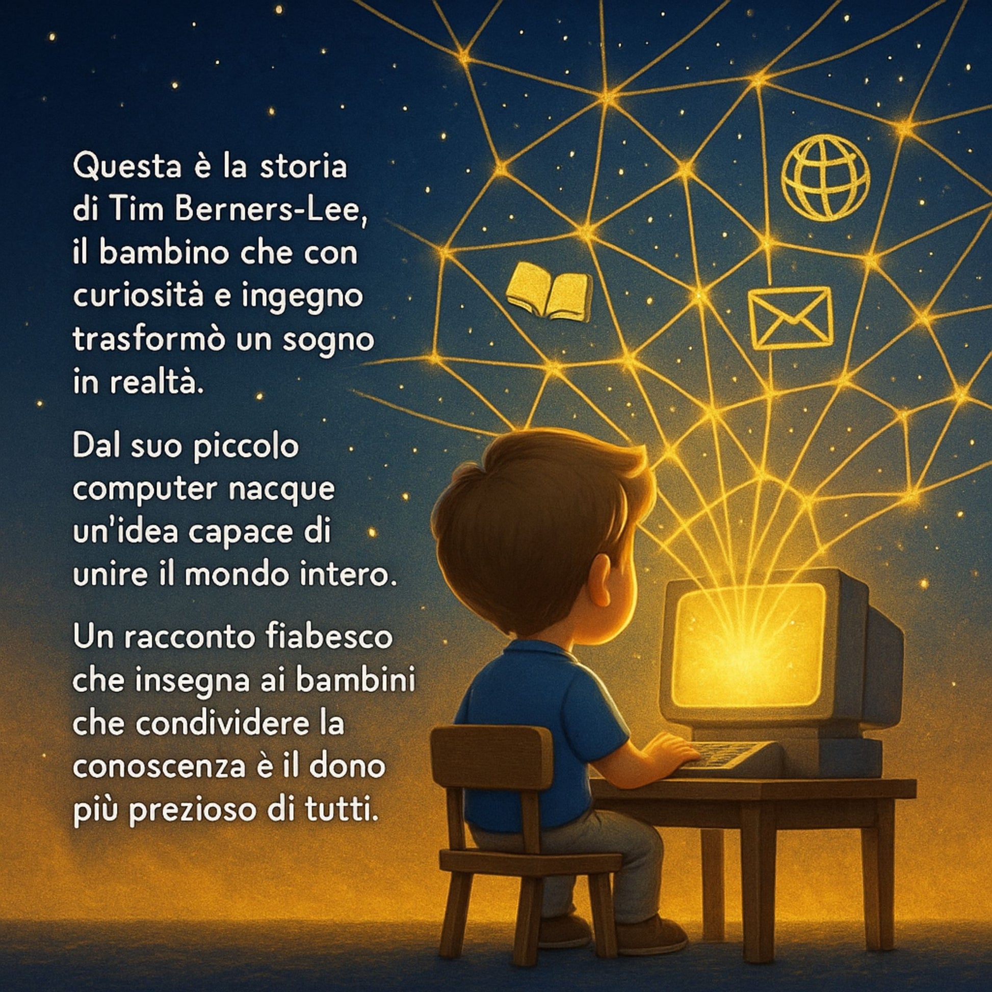 Il libro illustrato perfetto per bambini che amano le storie di scoperte, curiosità e sogni che cambiano il mondo. "Tim Berners-Lee – Il bambino che unì il mondo" è una favola moderna che racconta in chiave semplice e coinvolgente la vita dell’inventore del World Wide Web, l’uomo che ha rivoluzionato il modo in cui comunichiamo e condividiamo conoscenza.